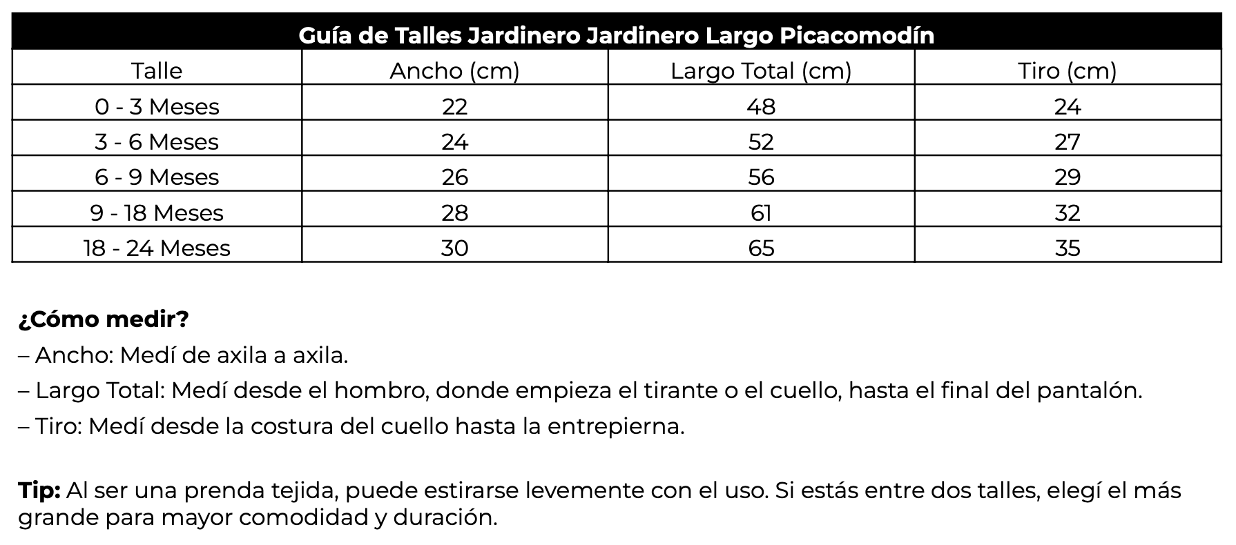Jardinero largo tejido, la pieza esencial del guardarropa de tu bebé. Diseñado para ser un verdadero comodín de vestuario: es unisex, fácil de poner y se adapta a cualquier estación.